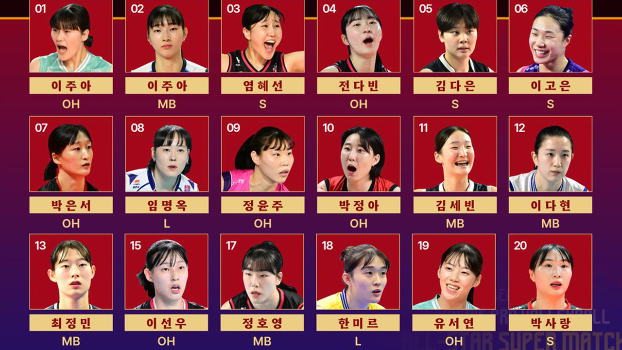 또 자유계약선수(FA) 자격을 얻은 이다현(현대건설)은 물론 챔피언결정전에서 세터 대결을 벌였던 이고은(흥국생명), 염혜선(정관장)도 20명의 올스타팀 명단에 이름을 올렸습니다.