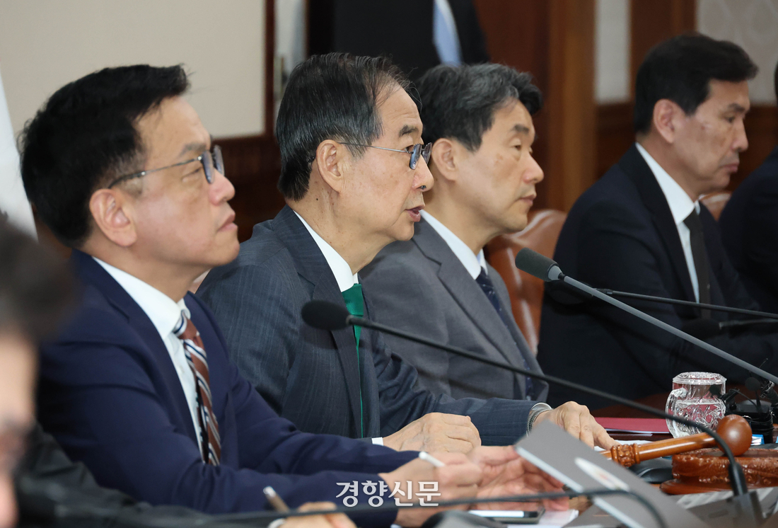 한덕수 대통령 권한대행 국무총리가 16일 정부서울청사에서 추가경정예산(추경)안 심의를 위한 임시국무회의를 주재하고 있다. 김창길 기자 |