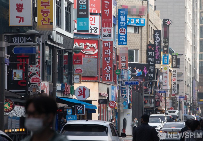 [서울=뉴스핌] 윤창빈 기자 = '소상공인 손실보상' 신청이 오늘부터 시작된다. 첫 3일간(27~29일)은 매일 4회 지급된다. 오후 4시까지 신청하면 당일에 보상금을 받을 수 있다. 온라인 신청이 어려운 소상공인들은 오프라인 신청도 가능하다. 11월3일부터 사업장 소재지 내 가까운 시·군·구청에 마련된 손실보상 전용 창구에 방문해 신청하면 된다. 손실보상금을 지급받는 업체 수는 식당·카페가 45만개사(73.6%·1조3000억원)로 가장 많았다. 이어 이·미용업과 목욕장 5만2000개사(8.5%), 학원 3만2000개사(5.2%) 순이었다. 업종별 평균 보상금액은 유흥시설이 634만원으로 가장 높다. 사진은 27일 서울 시내 유흥시설 밀집지역. 2021.10.27 pangbin@newspim.com |