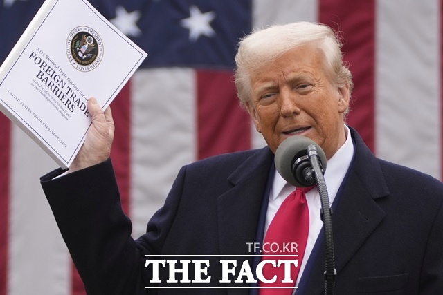 국제유가와 원유 수요가 하락하면서 실적이 악화한 정유사들이 대규모 자금 조달에 나서고 있다. 도널드 트럼프 미국 대통령이 2일(현지시간) 백악관 로즈가든에서 상호관세 부과 발표 행사 중 무역 장벽 연례 보고서를 들고 발언하고 있다. /AP·뉴시스 |
