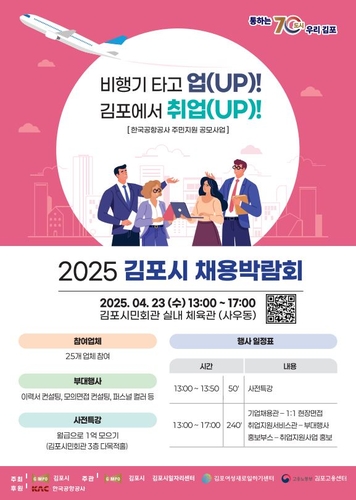 이번 채용박람회는 '2024년도 한국공항공사의 공항소음피해 주민지원 공모사업'에 선정돼 소음대책(인근)지역인 사우동 김포시민회관에서 개최되며, 한국공항공사의 후원으로 김포시 주최, 김포시일자리센터·김포여성새로일하기센터·김포고용센터가 공동 주관한다.