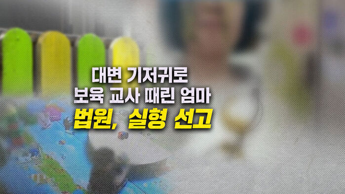 자신의 자녀가 아동 학대를 당했다고 의심해 대변이 묻은 기저귀로 보육교사의 얼굴을 때린 40대 여성에게 법원이 실형을 선고했습니다. 이 여성은 판결 직후 아이를 키워줄 사람이 없다고 오열하며 쓰러졌습니다.