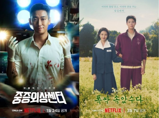 넷플릭스가 올해 1분기 선보인 ‘중증외상센터’, ‘폭싹 속았수다’ 포스터. (출처=넷플릭스 제공) |