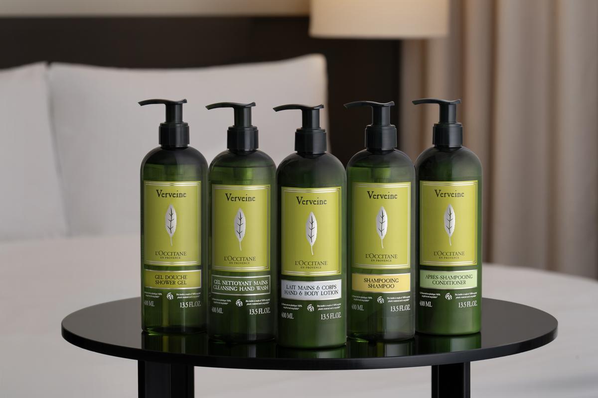 교체되는 어메니티인 버베니 라인은 △샤워젤 △샴푸 △컨디셔너 △핸드&바디로션 △핸드워시 등 총 5종으로 프랑스 프로방스 지역에서 자란 버베나 추출물을 사용한 청량한 향이 특징이다.