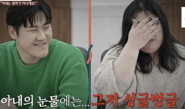 이날 7살 연상인 아내와 연하 남편의 사연이 공개됐다. 장강재 박경혜 부부. 아내는 남편에 대해 “철없는 초4~5학년 수준 .나이에 비해 더 철이없다”고 했다. 실제 남편은 “서장훈씨 실제로 봐서 두근 거린다”며 천진난만한 모습을 보였다.
