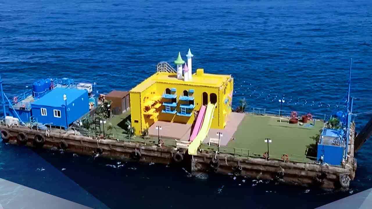 울릉도 망망대해에 떠 있는 장난스러운 시설물.