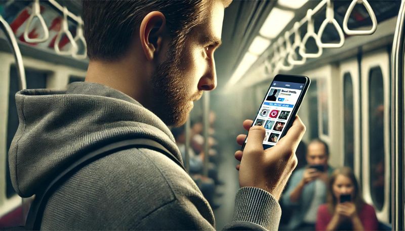 인스타그램을 훔쳐보는 남성 이미지. 챗GPT 제작 |