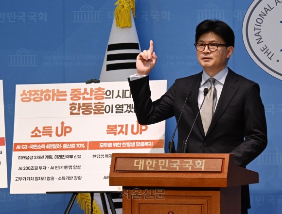 국민의힘 대선 경선 주자인 한동훈 전 대표가 15일 서울 여의도 국회 소통관에서 정책비전을 발표하고 있다. 2025.4.15. 안주영 전문기자 |