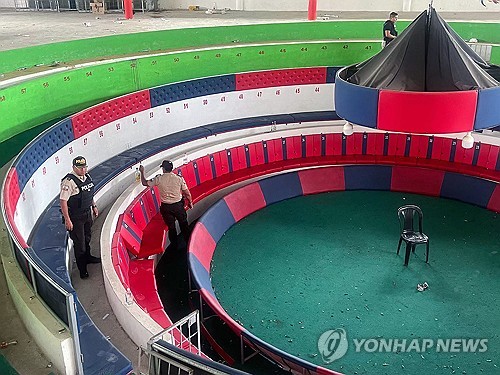 '12명 사망' 에콰도르 닭싸움 총격 사건 현장 살피는 경찰 |