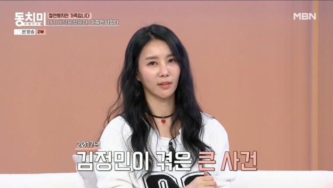 또 김정민은 "엄마의 재혼으로 새아버지가 있다. 저와 막내가 엄마 쪽이고 둘째, 셋째 남동생이 아빠 쪽이다. 데뷔 후 혼자서 살아왔고 2017년에 힘든 일을 겪었다"며 8년 전 전 연인에게 사기, 공갈 혐의로 고소당했던 사건에 대해 언급했다.