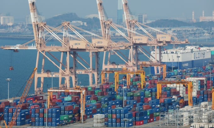 10일 경기 평택시 포승읍 평택항 수출 야적장에 컨테이너들이 쌓여있다./사진제공=뉴스1 |