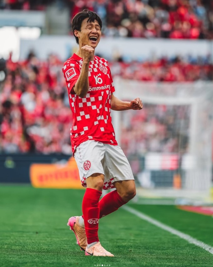 이재성이 19일 볼프스부르크와 2024~2025 분데스리가 30라운드 홈 경기에서 골 셀레브레이션을 하고 있다. [사진 = 마인츠] |