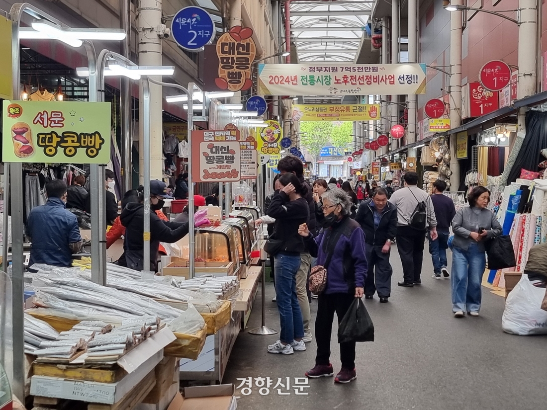 지난 4월 15일 대구 서문시장에서 사람들이 물건을 둘러보고 있다. 이호준 기자 |