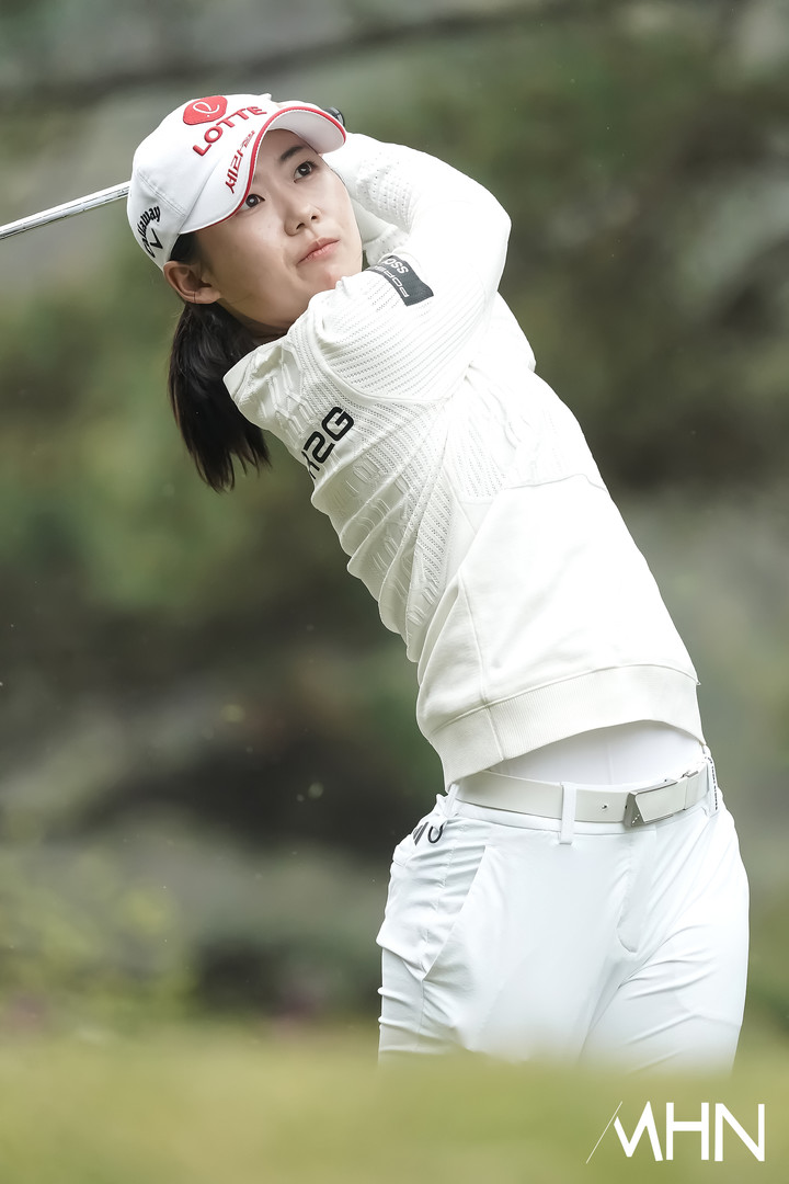 황유민(롯데)이 2번홀 경기를 펼치고 있다.