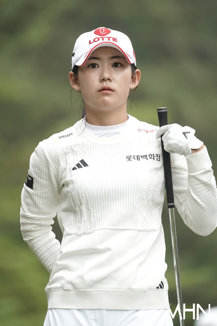 황유민(롯데)이 2번홀 경기를 펼치고 있다.