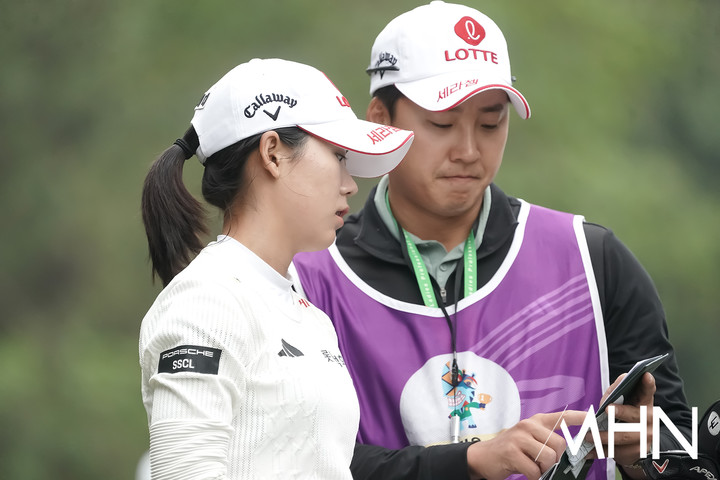 [mhn포토] 황유민, 캐디 박중근과 살피는 공략 지점