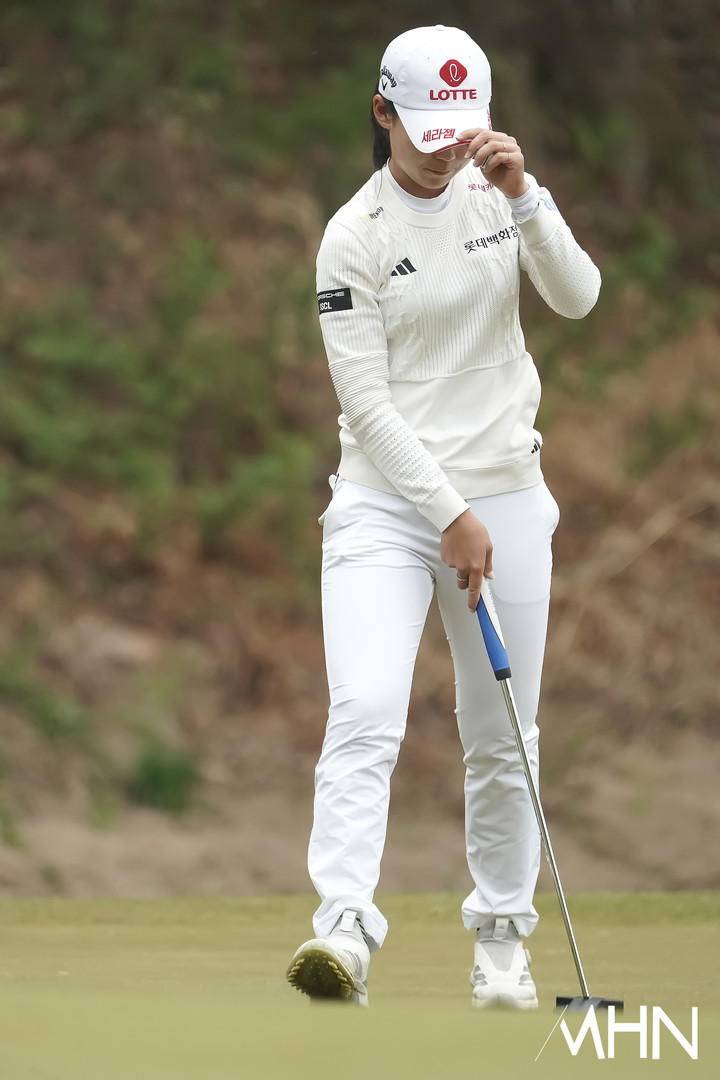 황유민(롯데)이 1번홀 경기를 펼치고 있다.