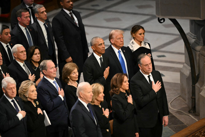 지난 1월 워싱턴 DC 국립 대성당에서 열린 지미 카터 전 미국 대통령의 국장에 역대 미국 대통령들이 참석했다.(사진=AFP) |
