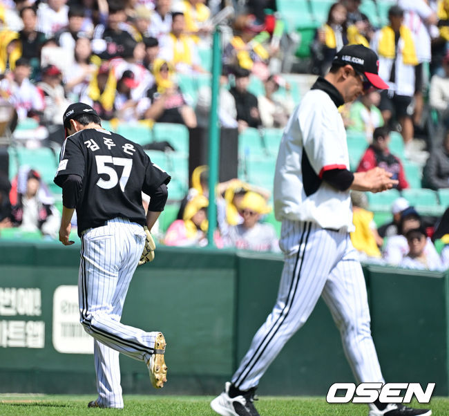 1회말 1사 만루 상황 LG 선발 김주온이 강판되고 있다. 2025.04.20 / dreamer@osen.co.kr