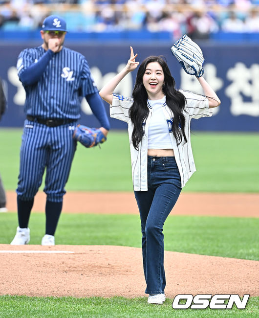 레드벨벳 아이린이 삼성 라이온즈 승리 기원 시구를 하고 있다. 2025.04.20 / foto0307@osen.co.kr