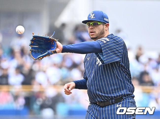 삼성 라이온즈 선발 투수 후라도가 볼을 받고 있다. 2025.04.20 / foto0307@osen.co.kr