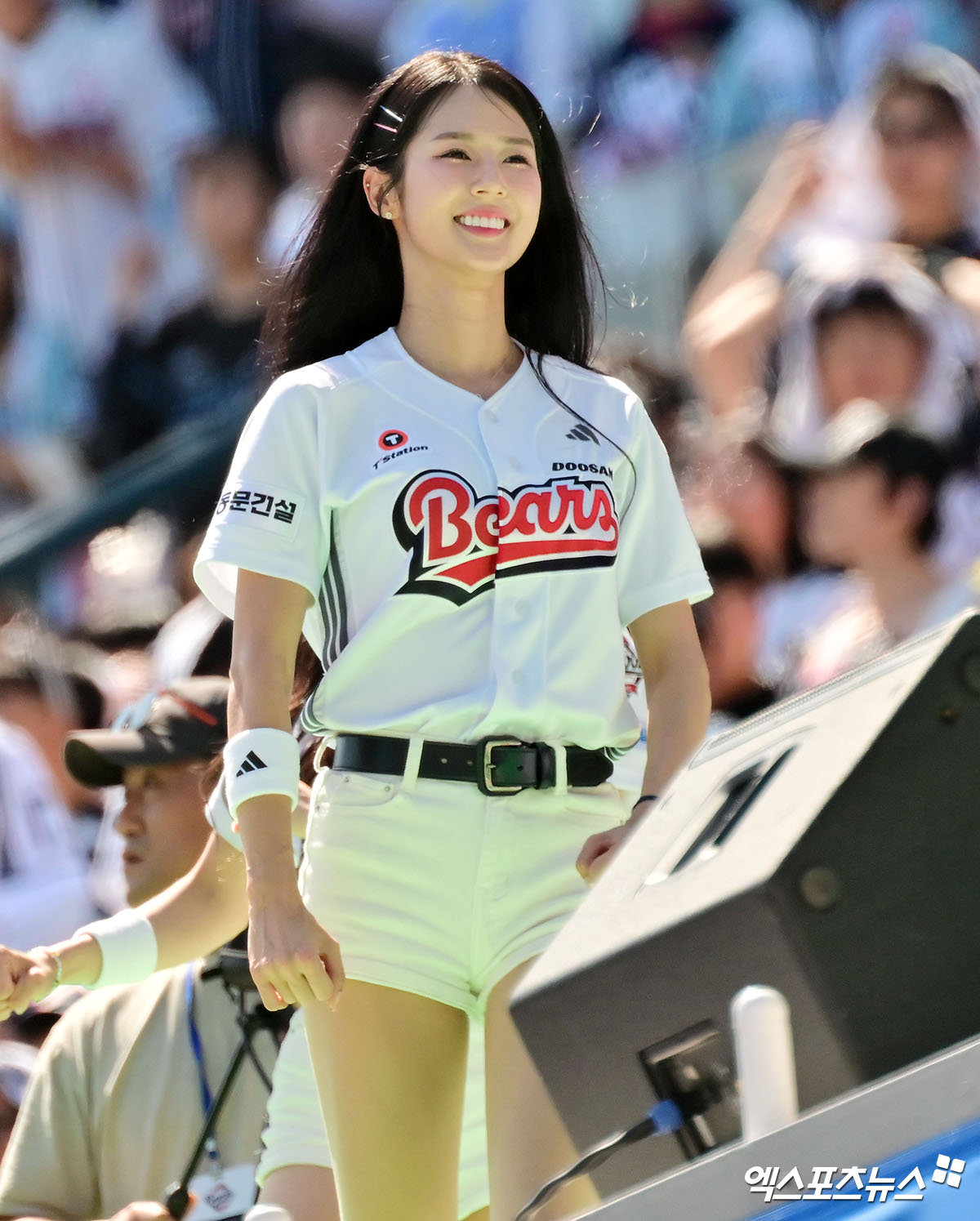 (엑스포츠뉴스 잠실, 김한준 기자) 20일 오후 서울 송파구 잠실야구장에서 열린 '2025 신한 SOL Bank KBO리그' KIA 타이거즈와 두산 베어스의 경기, 박기량 치어리더가 열띤 응원을 선보이고 있다.