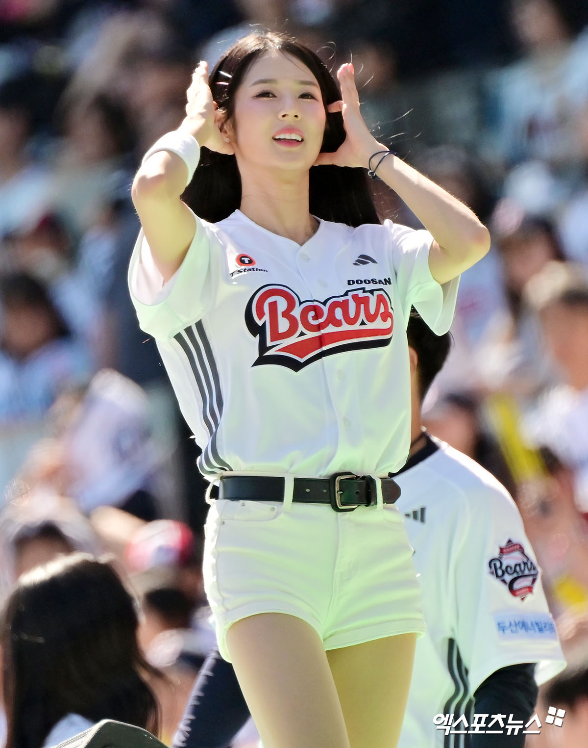 (엑스포츠뉴스 잠실, 김한준 기자) 20일 오후 서울 송파구 잠실야구장에서 열린 '2025 신한 SOL Bank KBO리그' KIA 타이거즈와 두산 베어스의 경기, 박기량 치어리더가 열띤 응원을 선보이고 있다.