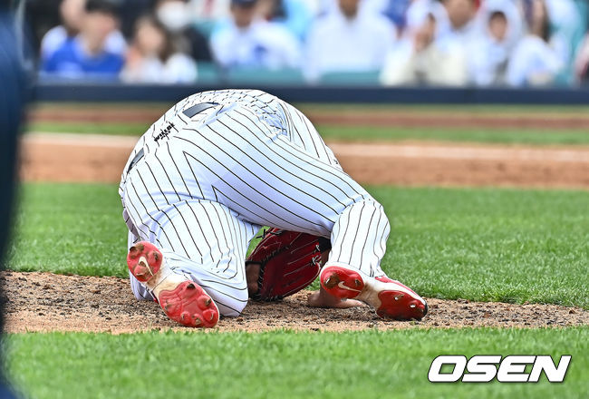 롯데 자이언츠 선발투수 나균안이 3회말 2사 1,2루 삼성 라이온즈 구자욱 타석때 투구를 하다 마운드에서 넘어지고 있다. 2025.04.20 / foto0307@osen.co.kr