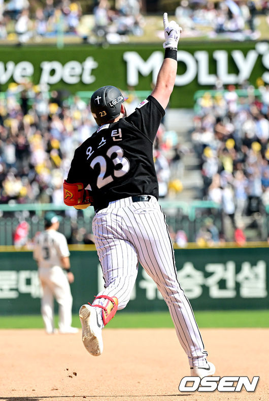 4회초 무사 1, 3루 상황 LG 오스틴이 추격의 중월 스리런포를 날리고 그라운드를 돌며 기뻐하고 있다. 2025.04.20 / dreamer@osen.co.kr