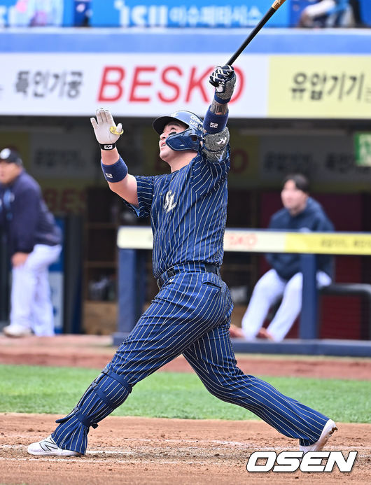 삼성 라이온즈 박병호가 4회말 좌측으로 힘차게 날아가는 타구를 바라보고 있다. 결과는 파울. 2025.04.20 / foto0307@osen.co.kr