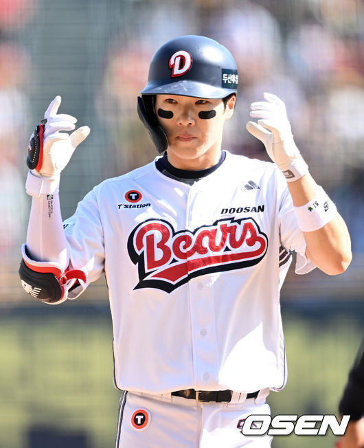 5회말 무사에서 두산 조수행이 좌전 안타를 치고 환호하고 있다. 2025.04.20 /sunday@osen.co.kr