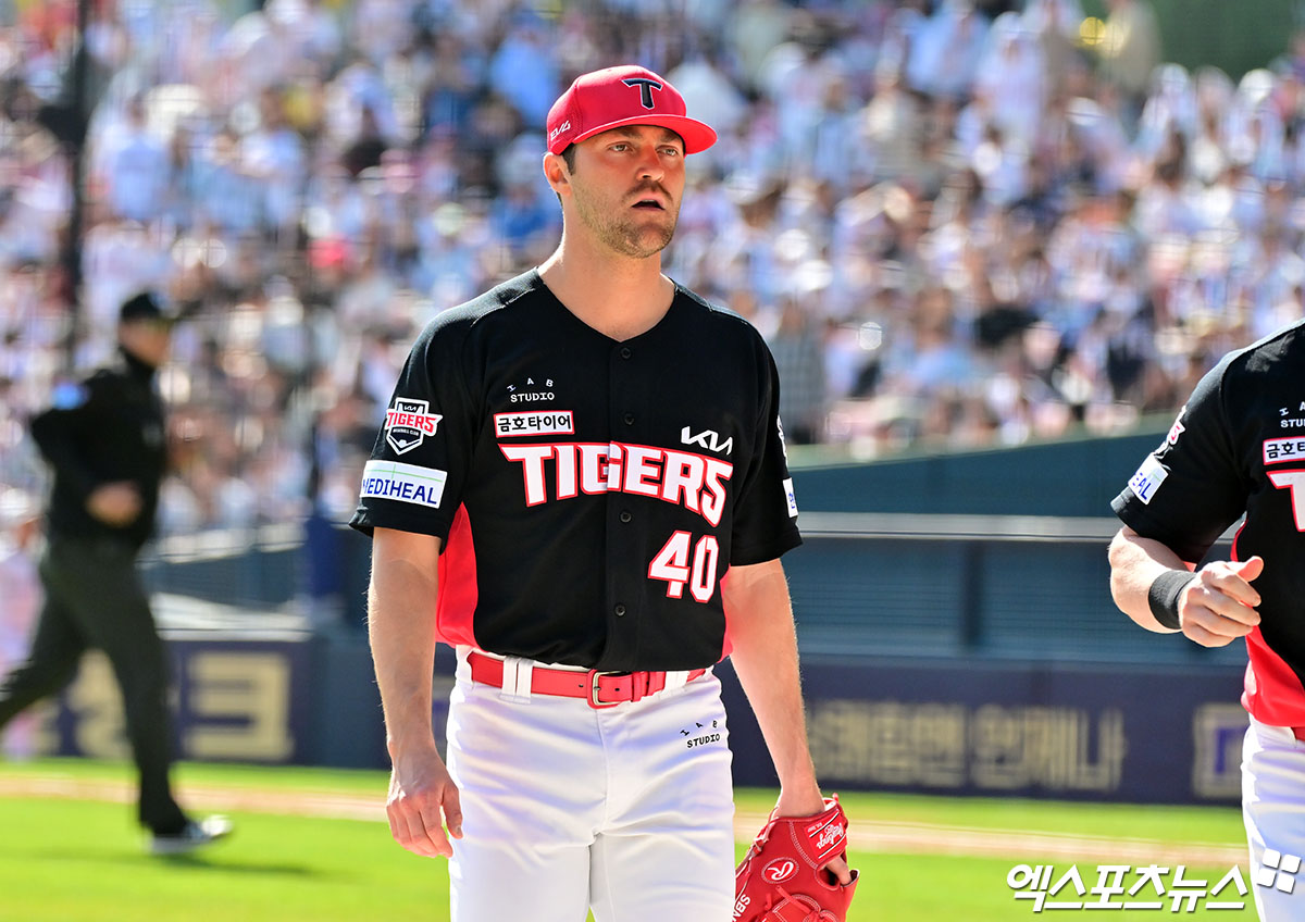 (엑스포츠뉴스 잠실, 김한준 기자) 20일 오후 서울 송파구 잠실야구장에서 열린 '2025 신한 SOL Bank KBO리그' KIA 타이거즈와 두산 베어스의 경기, 5회말 수비를 마친 KIA 네일이 더그아웃으로 향하고 있다.
