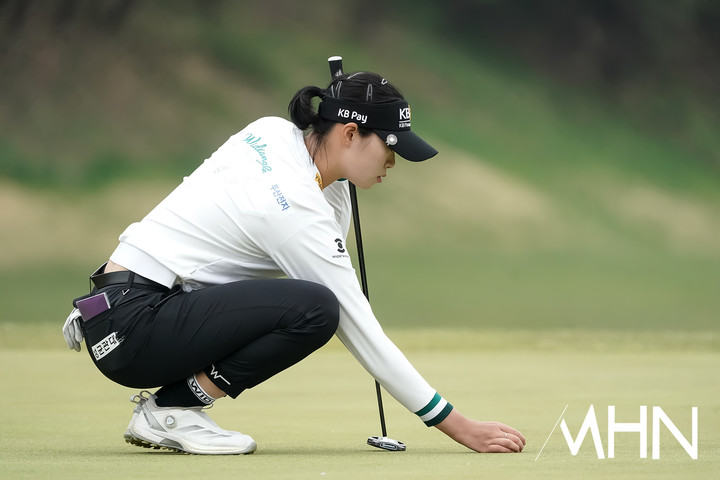 [mhn포토] 방신실, 17번홀 버디에 이어 18번홀도 버디 잡는다