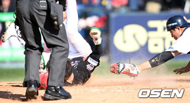 7회초 1사 2,3루에서 KIA 나성범의 땅볼때 홈으로 쇄도한 3루주자 박찬호가 세이프 되고 있다. 2025.04.20 /sunday@osen.co.kr