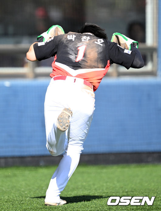 7회초 1사 2,3루에서 KIA 나성범의 땅볼때 홈으로 쇄도한 3루주자 박찬호가 세이프 되며 환호하고 있다. 2025.04.20 /sunday@osen.co.kr