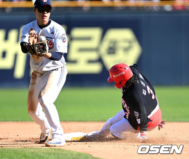 7회초 1사 1,2루에서 KIA 김선빈이 좌전 적시 2루타를 치고 슬라이딩을 하고 있다. 2025.04.20 /sunday@osen.co.kr