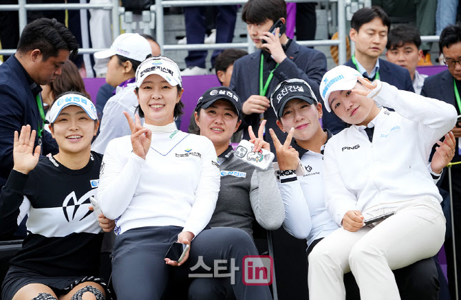 [골프in포토]유현조-박지영-마다솜-홍지원-오경은,시상식장 한 컷