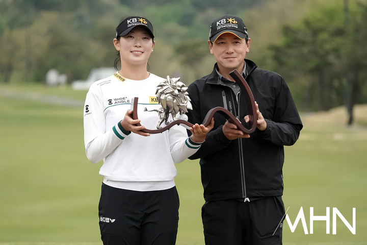 [mhn포토] 방신실, 캐디 양원철과 함께 우승 합작