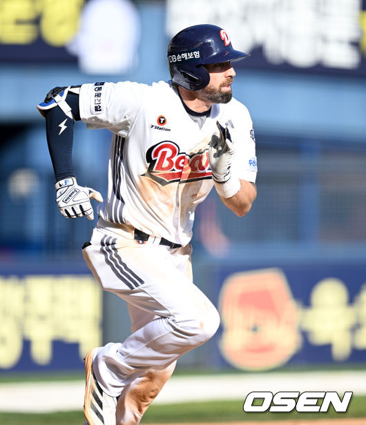 7회말 1사 1루에서 두산 케이브가 우중간 안타를 치고 그라운드를 달리고 있다. 2025.04.20 /sunday@osen.co.kr