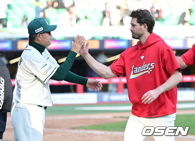 경기를 마치고 승리한 SSG 이숭용 감독과 승리투수 드류 앤더슨이 인사를 나누고 있다. 2025.04.20 / dreamer@osen.co.kr
