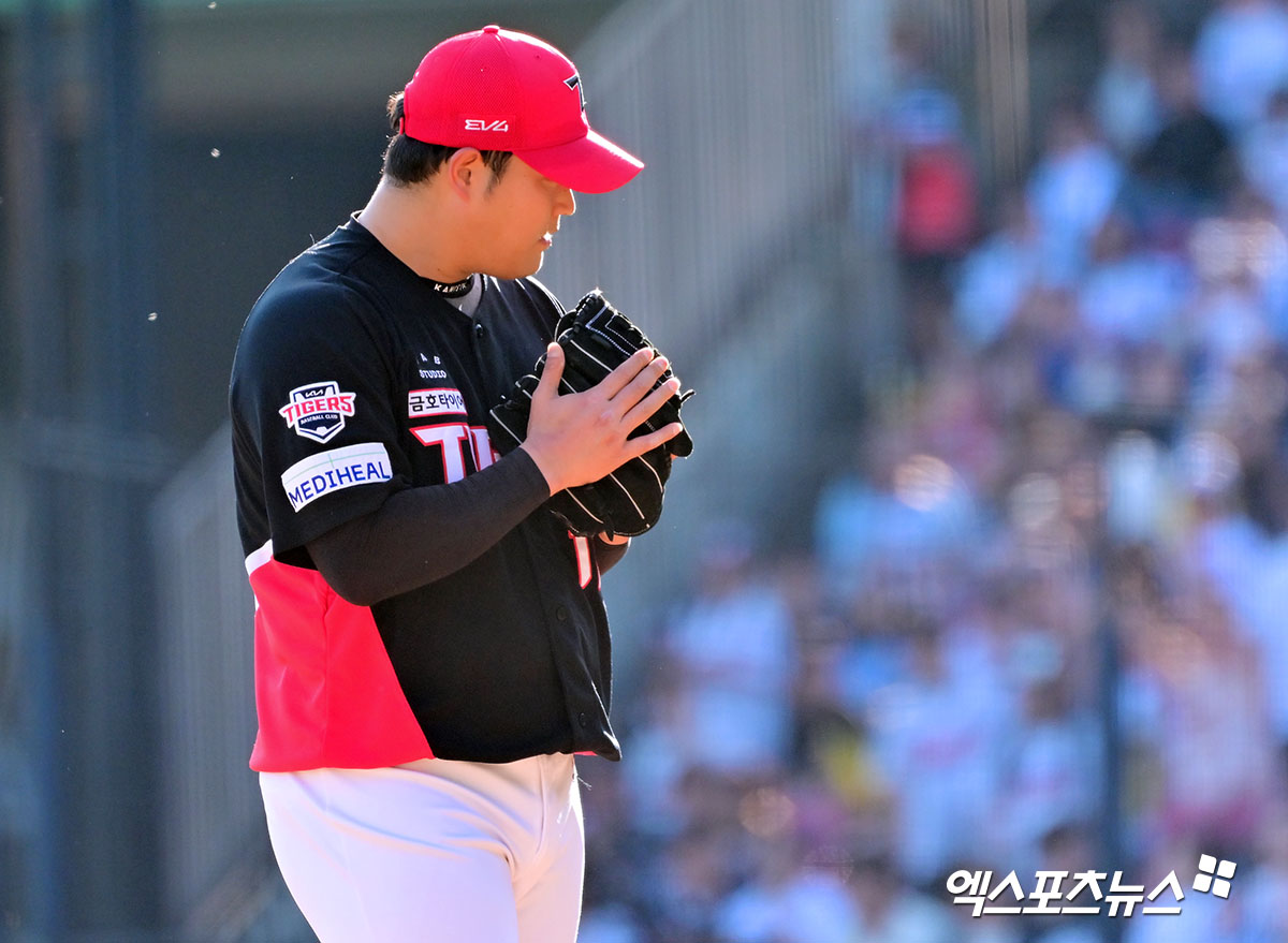 (엑스포츠뉴스 잠실, 김한준 기자) 20일 오후 서울 송파구 잠실야구장에서 열린 '2025 신한 SOL Bank KBO리그' KIA 타이거즈와 두산 베어스의 경기, 8회말 무사 1루 KIA 조상우가 1루 견제를 한 후 세이프가 선언되자 이범호 감독이 비디오 판독을 요청했다.