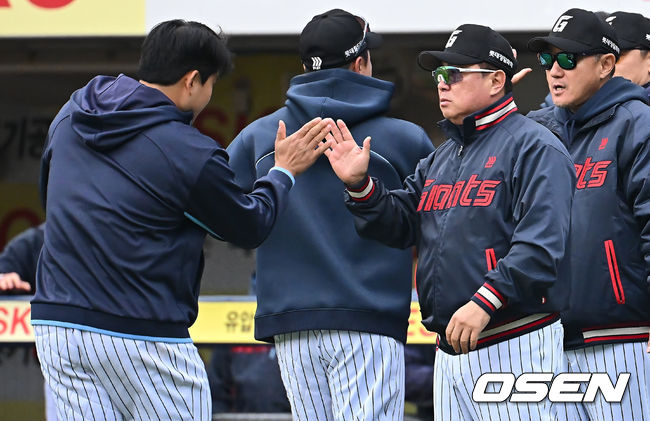 롯데 자이언츠 김태형 감독이 삼성 라이온즈에 4-3으로 승리한 후 유강남과 하이파이브를 하고 있다. 2025.04.20 / foto0307@osen.co.kr