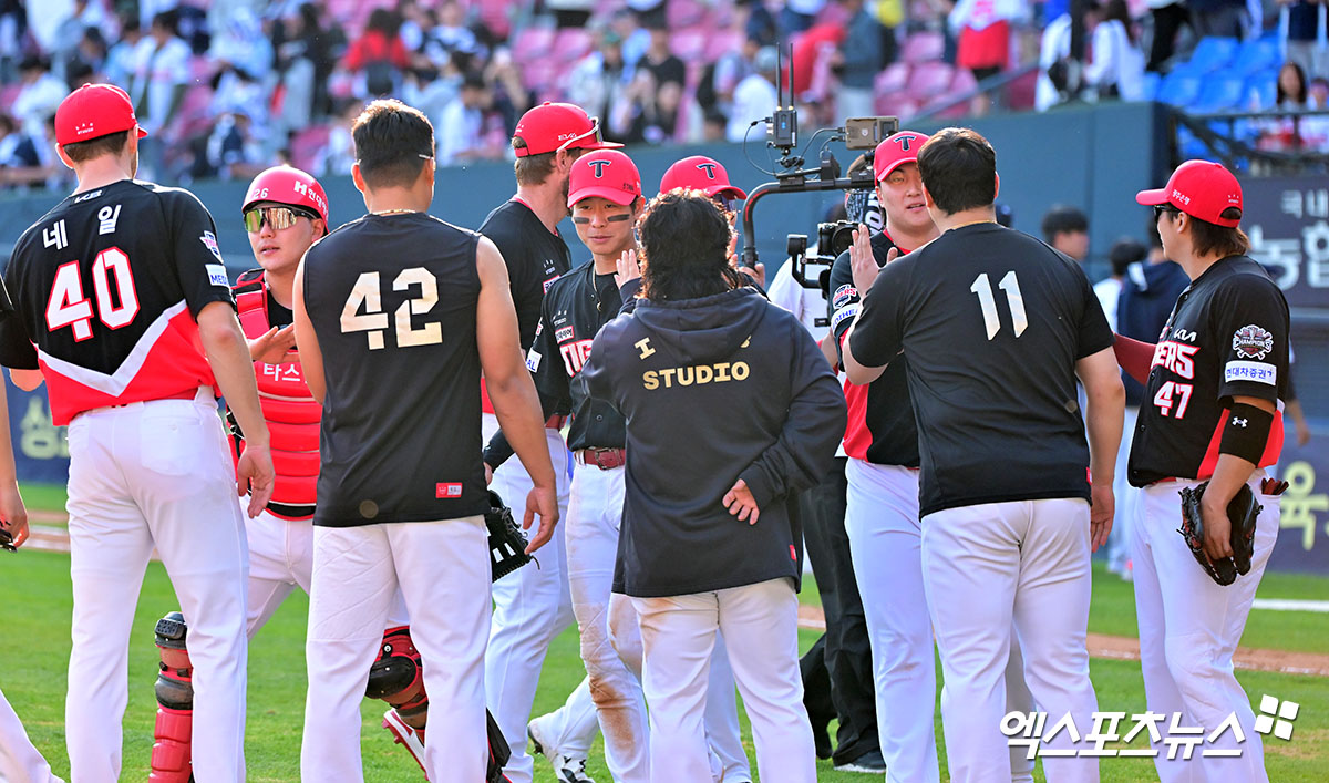 ​​​​​​​이날 경기에서 승리한 KIA 선수들이 기뻐하고 있다.