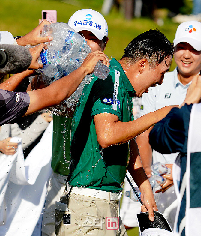 [골프in포토] 김백준 '동료들의 격한 축하세례'