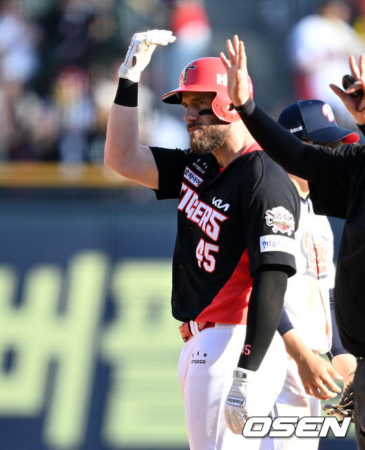 9회초 1사 2루에서 KIA 위즈덤이 중월 적시 2루타를 치고 환호하고 있다. 2025.04.20 /sunday@osen.co.kr
