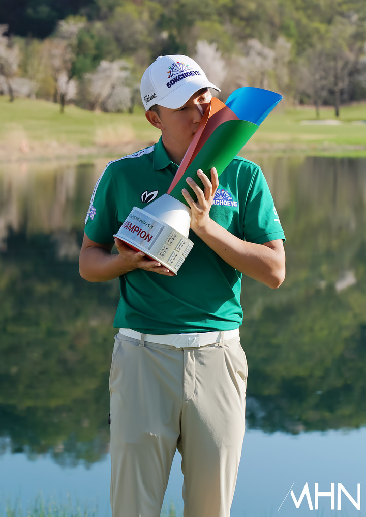 이날 4라운드(최종) 경기에서 김백준이 트로피를 들고 있다.