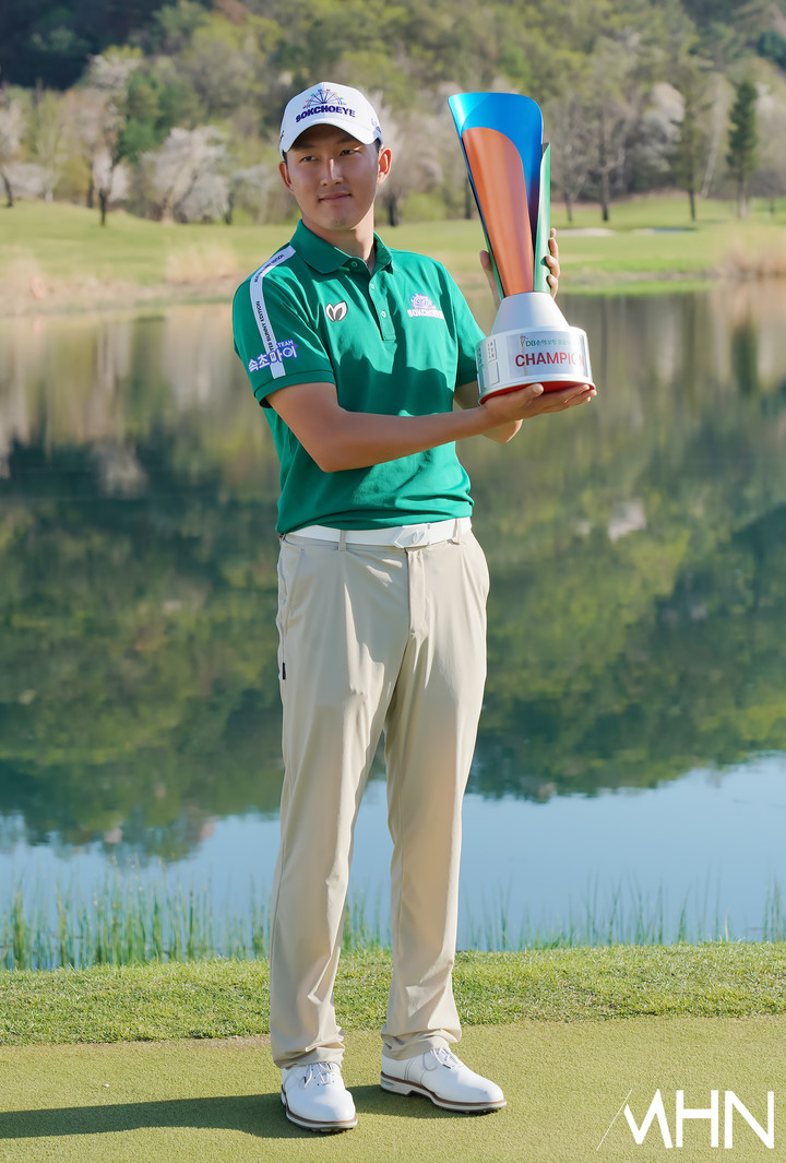 이날 4라운드(최종) 경기에서 김백준이 트로피를 들고 있다.