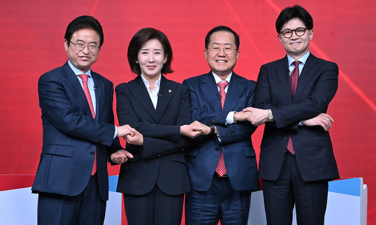 20일 서울 강서구 아싸아트홀에서 열린 국민의힘 1차 대선 경선 B조 토론회에는 나경원·이철우·한동훈·홍준표 후보가 참여해 ‘사회통합’을 키워드로 토론했다. 1차 경선 통과 가능성이 높은 후보가 많아 ‘죽음의 조’로도 불린 이번 토론회에서는 찬탄파 한 후보와 나머지 반탄파 후보의 대립 구도가 선명하게 드러났다.