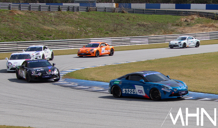 20일 알핀 클래스 결승전 경기에서 차량들이 내리막 코너를 질주하고 있다.