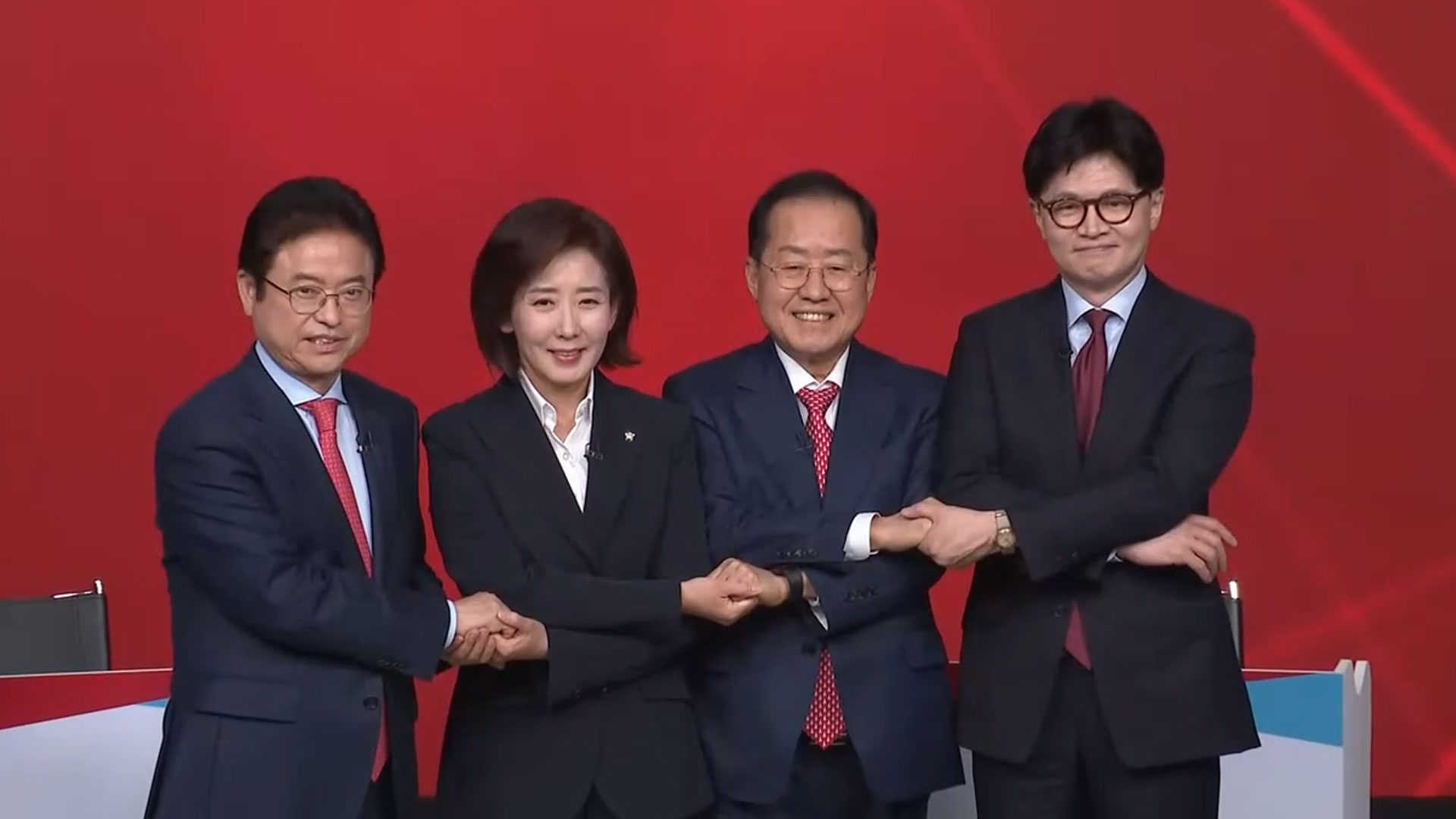 한 후보를 향한 공세는 이후로도 계속됐는데, 나 후보가 "보수 통합을 위해 대통령 후보는 그만두면 어떻겠느냐"고 하자, 한 후보는 "국민을 위해 꼭 필요한 위치에 있다고 생각한다"고 대응했습니다.